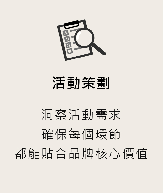 舉凡與品牌活動相關的,都在我們的服務範圍內!